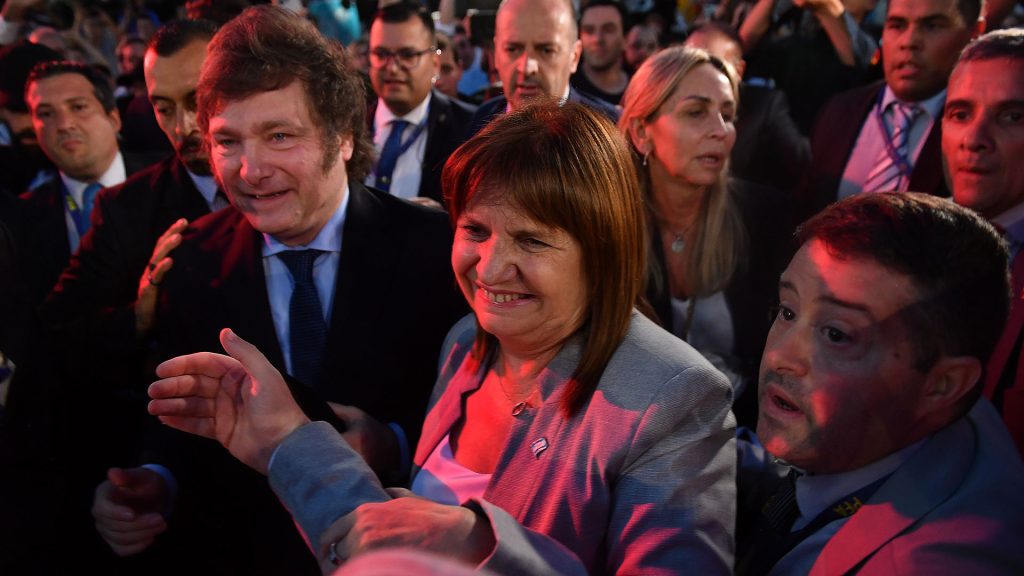 Javier Milei estuvo acompañado por la vicepresidenta Victoria Villarruel, la secretaria general de la presidencia, Karina Milei; la ministra de Seguridad, Patricia Bullrich; y el jefe de Gobierno porteño, Jorge Macri.