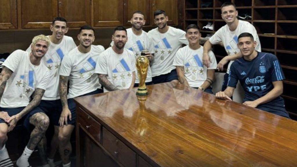 La imagen con la Copa fue subida por el propio Messi a sus redes sociales y también por el zaguero Cristian “Cuti” Romero, quien agregó un posteo: “Ufff..terrible bandaaaaa…”.