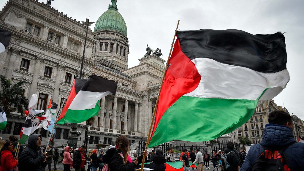 La movilización fue convocada por representantes de la comunidad árabe e islámica de la Argentina y contó con la participación de la cotitular de Madres de Plaza de Mayo, Nora Cortiñas. Leyeron un documento que calificó de “inaudita” la cantidad de niños “que están siendo asesinados día a día por los indiscriminados bombardeos israelíes”.