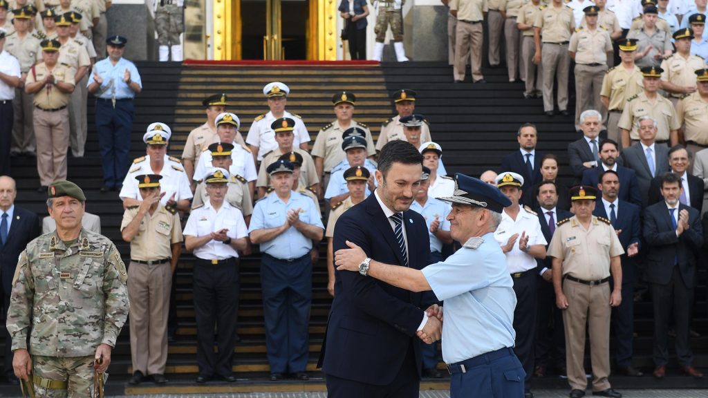 En su discurso del acto de traspaso de mando, el ministro de Defensa aseguró que las Fuerzas Armadas son instituciones de “la Constitución, de la democracia y fundamentalmente de la paz” y deben estar “al servicio de la reconstrucción de la Patria”.
