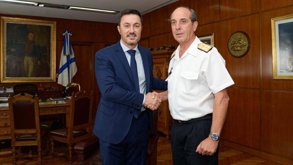 El ministro de Defensa dialogó con el jefe de la Armada, almirante Julio Guardia, de quien recibió “un informe sobre las capacidades navales” y a la vez el funcionario “indicó las directivas de trabajo orientadas a los ejes operativos de su gestión”.